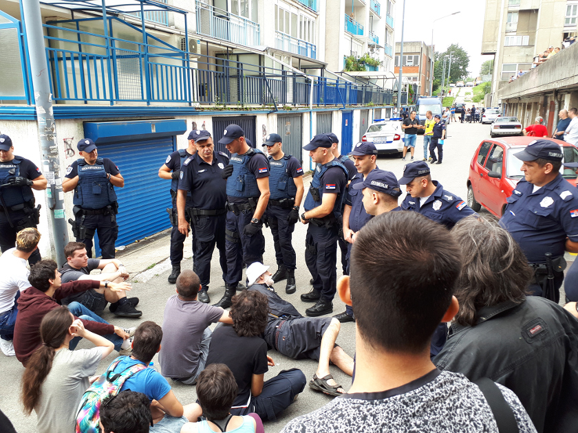 Podržavamo rad grupa Združena akcija „Krov nad glavom” i Kolektivna odbrana stanara na aktivnostima protiv svih prinudnih iseljenja. Aktivisti i aktivistkinje ovih grupa su od strane bahatih pripadnika policije koji su odbijali da se legitimišu bacani licem na zemlju, maltretirani su i privođeni pod pretnjama da im sleduju krivične prijave. Oni su uz podršku okupljenih, mirnim i nenasilnim putem, izražavajući nezadovoljstvo, više puta sprečili nasilna iseljenja ljudi, čitavih porodica koje zbog bezobzirnosti nadležnih institucija treba da ostanu bez krova nad glavom.