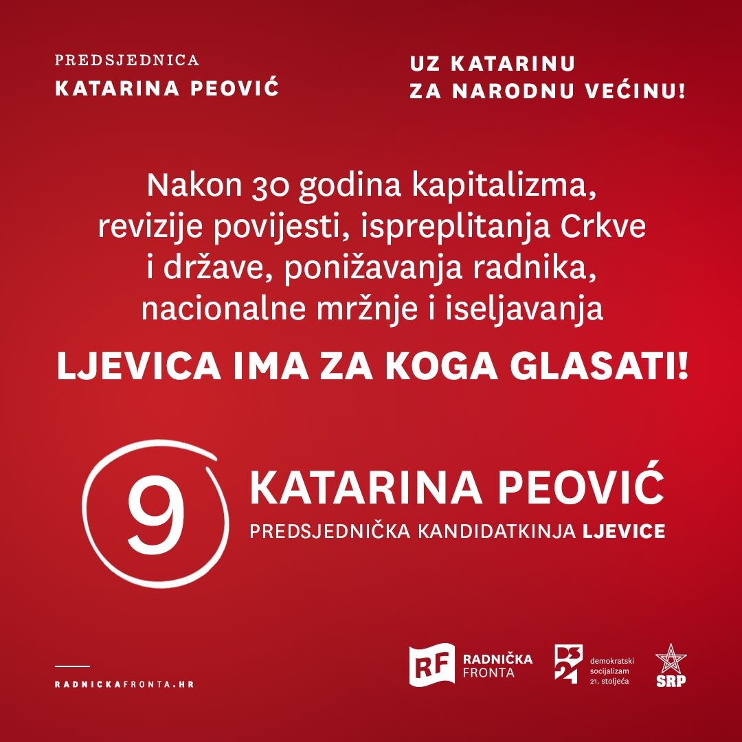 To se vidi po organiziranom propagandnom ustaškom linču protiv Katarine kao jedine kandidatkinje koja se usudila založiti za radničku klasu, a protiv šovinističkog i klerikalnog huškanja. Zato je glasanje za Katarinu nužan dio otpora prema vječnom klizanju udesno.
