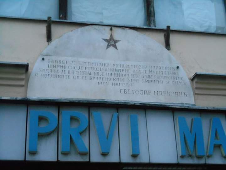 Sada je reč o beloj mermernoj tabli sa citatom Svetozara Markovića koja obeležava mesto na kome se nalazila štamparija u kojoj su štampane novine pokrenute u vreme Svetozarevog života i rada u Kragujevcu. Spomenik se još uvek nalazi u Glavnoj ulici, ali ga je vlasnik prodavnice obuće prekrečio u zelenu boju.