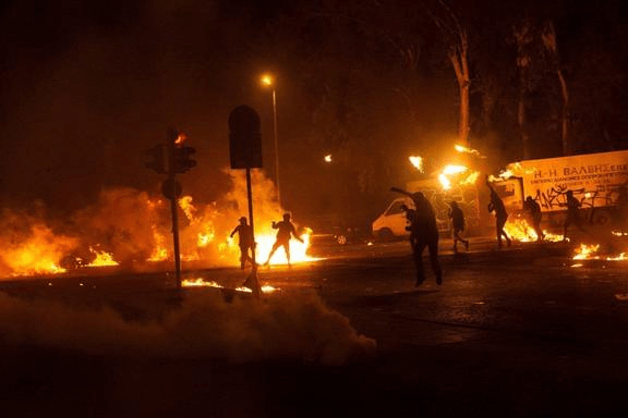 (slika sa protesta održanih 3. VII ove godine u znak solidarnosti sa protivprravno zatvorenim Janisom Mihalidisom)
