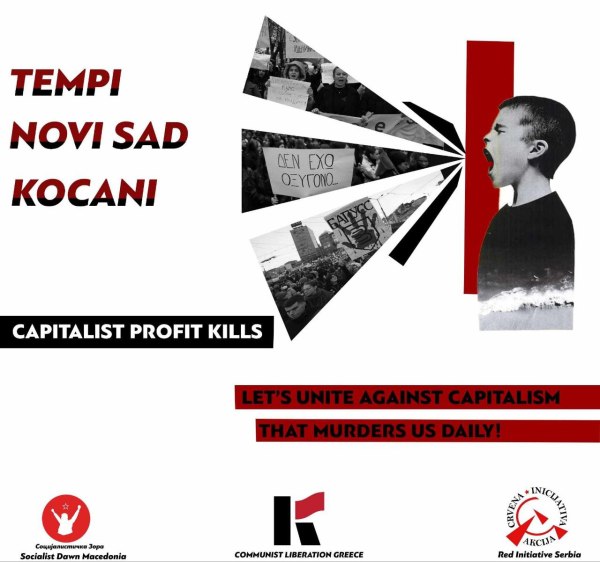 -Zajednička izjava- Kapitalistički profit ubija! Ujedinimo se protiv kapitalizma koji nas svakodnevno ubija. Vozovi koji se kreću u suprotnim smerovima na istoj pruzi. Urušavanje nadstrešnice sveže renovirane železničke stanice. Požar u noćnom klubu koji radi nelegalno. Tri zločina koja su se mogla predvideti počinjena od istog sistema. Osnovni karakter kapitalizma je ono što proizvodi tragedije... Continue Reading →