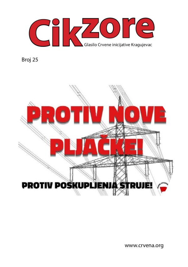 Izašao je novi broj „Cika zore“, glasila Crvene inicijative Kragujevac… U njemu pišemo o antiratnom pokretu u epohi kada nas buržoazija pokušava odvesti u još jednu svetsku klanicu. Bavimo se studentskim pokretom i kampanjom "Obrazovanje ne sme da bude privilegija". U teorijskom delu pišemo o veštačkoj inteligenciji iz marksističke perspektive i podsećamo na jedan govor Karla... Continue Reading →